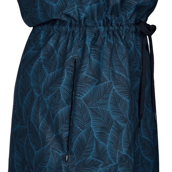Durch sein leichtes Polyester-Gewebe trägt sich das Kleid auch an brütend heißen Sommertagen sehr angenehm. Das Material leitet entstehende Körperfeuchtigkeit schnell von der Haut weg nach außen, wo sie zügig verdunstet. Dadurch klebt das Material nicht unangenehm am Körper. Weiterer Pluspunkt: Knapp die Hälfte des verwendeten Polyesters ist recycelt, so ist das Material neben aller Funktionalität auch noch nachhaltig.